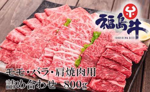 ○ボリューム満点!福島牛モモ・バラ・肩焼肉用詰め合わせ 800g