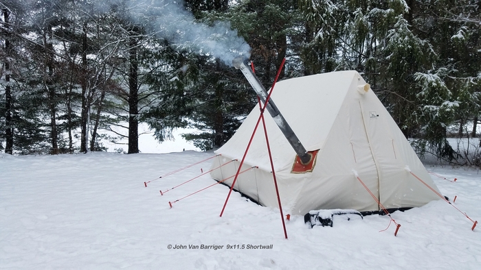 7oz難燃性コットン(米国の難燃性基準CPAI-84をクリアー)を使用、表面にはSunforger Canvasと呼ばれる撥水処理が施され、『軽くて、暖かく、火にも、水にも強い』、究極の冬用テントです。