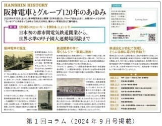 更に、沿線情報紙「ホッと!HANSHIN」でも、「HANSHIN HISTORY 阪神電車とグループ120年のあゆみ」と題するコーナーを設け、懐かしい写真とともに歴史を振り返ります。