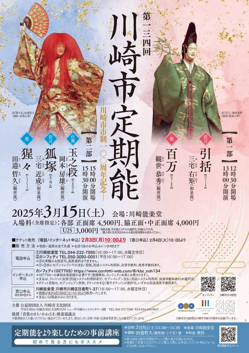 公益財団法人 川崎市文化財団主催、『第134回川崎市定期能~観世流~』が2025年3月15日 (土)に川崎能楽堂(神奈川県 川崎市川崎区 日進町 1-37)にて上演されます。