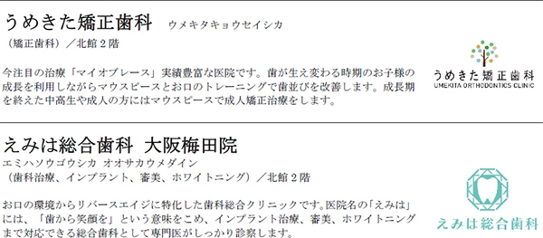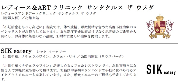 都市公園の「みどり」と一体となれる計15店舗がオープンします。ホームセンターコーナン初の都市型店舗である「gardens umekita」では、販売だけでなく植物の楽しさを積極的に発信します。また、開放的でゆったりとした空間を実現した国内有数の大型店「パタゴニア 大阪・梅田」や、ペットとともに公園ライフを満喫できるショップが出店します。さらに、歯科や産婦人科などのヘルスケア関連の施設も充実しています。なお、この北館は、隣接するグランフロント大阪 北館とデッキでつながります。