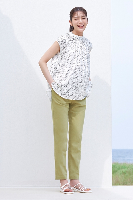この夏おススメの麻にレーヨンをブレンドしたなめらかな風合いと肌触りが魅力のフレンチリネンシャツをメインに、素敵な笑顔で夏映えする大人のリラックスコーデを披露しています。藤本美貴さん特集ページはこちら(https://bit.ly/3jWtTR5)