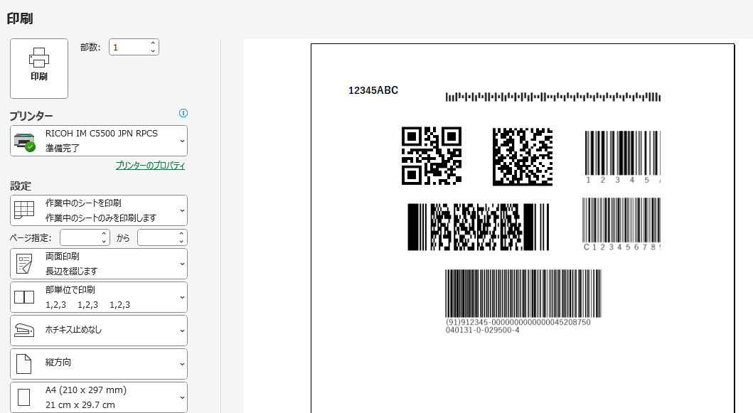 2次元バーコード(DataMatrix/QRコード/PDF417)