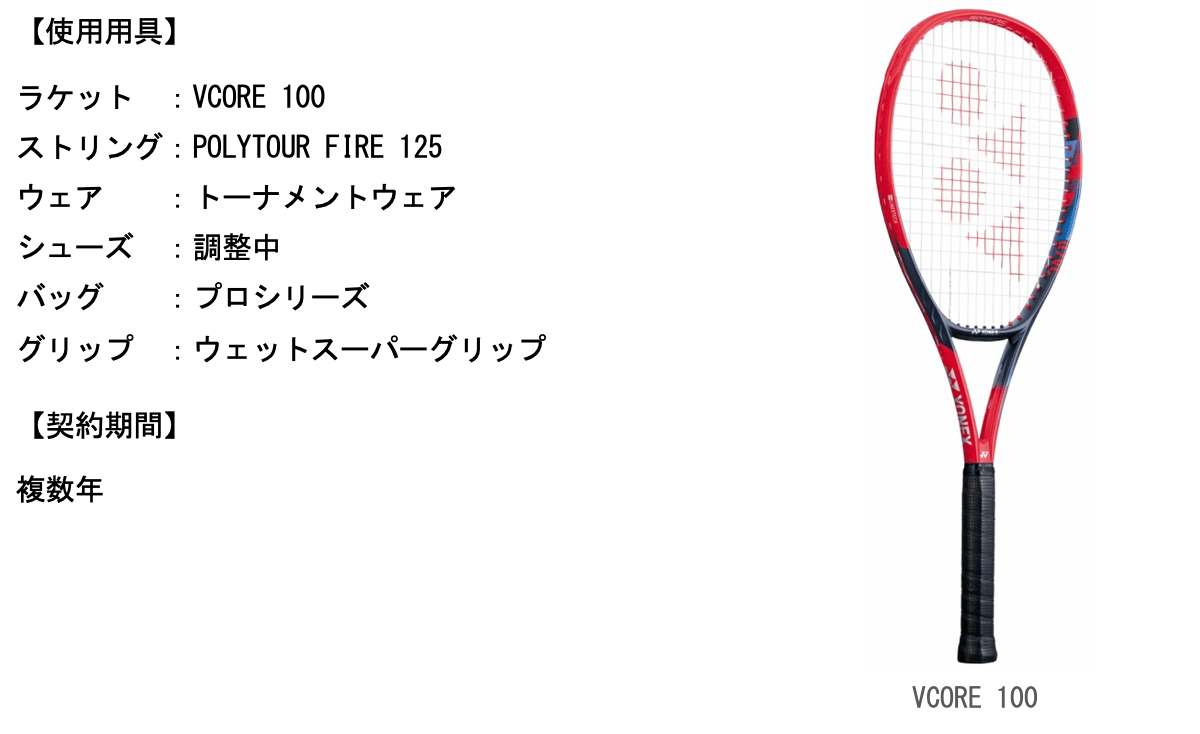 弊社は、ルバキナをジュニア時代から継続してサポートし、ともに歩んでまいりました。弊社の高品質な製品と、選手の声に真摯に耳を傾けるサポート体制が評価され、この度ラケットに加えてウェアやシューズ等、すべての用具に弊社製品を使用する総合契約に至りました。