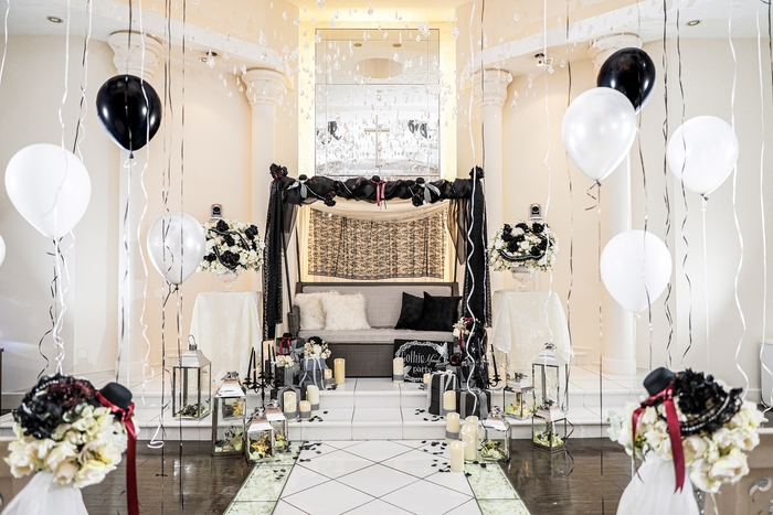 普段なかなかお入りいただく機会の少ないチャペルも限定で開放し、モノクロ・ゴシックの世界を表現したフォトスポットで記念のお写真を撮影いただけます。