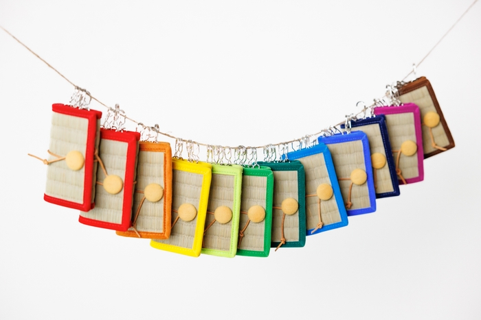 4色のボタンと12色のパイピングを組み合わせた、全48種のカラーバリエーションが目を惹く《inoca》に新しくラインナップされる《inoca CASE KEY》。カラフルな色展開はそのまま、使い込むほどに変化する畳表の柔らかな触り心地や優しい色合い、心安らぐ香りを手元でたのしむことができる、ころんと手に馴染むキーケースです。