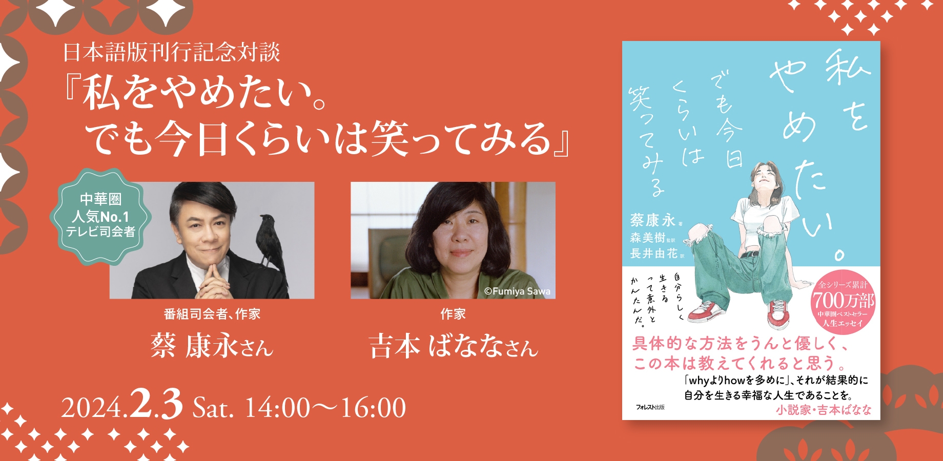 『私をやめたい。でも今日くらいは笑ってみる』 出版記念イベントを2/3開催 日本語版刊行記念対談 ~蔡康永さん×吉本ばななさん~
