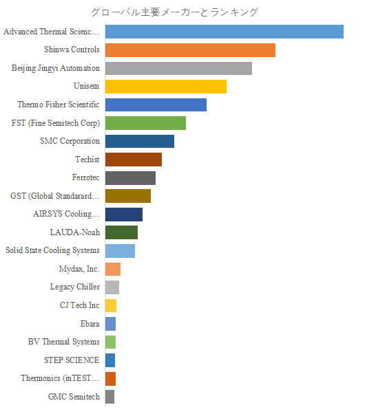 LP Informationのトップ企業研究センターによると、半導体チラーの世界的な主要製造業者には、Advanced Thermal Sciences (ATS)、Shinwa Controls、Beijing Jingyi Automation、Unisem、Thermo Fisher Scientific、FST (Fine Semitech Corp)、Techist、SMC Corporation、Ferrotec、GST (Global Standarard Technology)などが含まれている。2024年、世界のトップ10企業は売上の観点から約79.0%の市場シェアを持っていた。