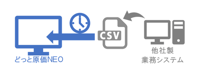 あらかじめ設定したタイミングで外部データからの取込みが自動実行されます。(どっと原価NEO クラウドは2021年5月対応予定)