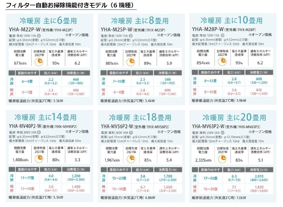 フィルター自動お掃除機能付きモデル(6機種)