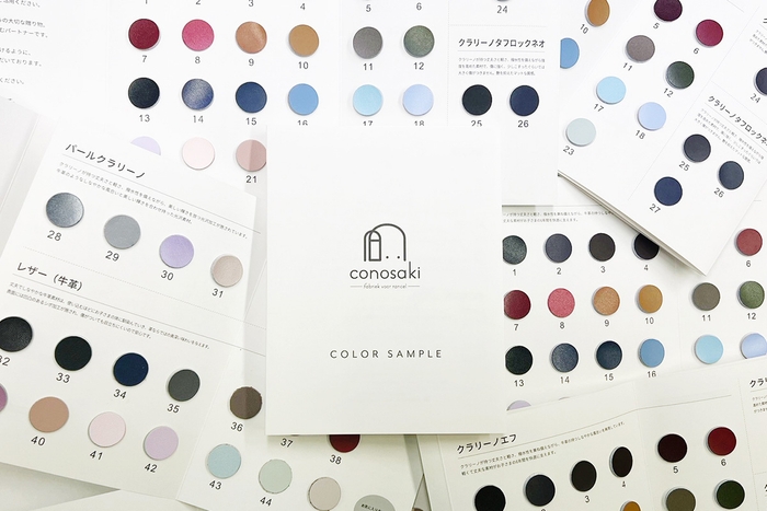 conosaki LINE公式アカウントを友だち追加していただいた方に、送信されるカラーサンプル請求フォームのURLにアクセスいただき、必要情報を入力して、ご請求をお願いいたします。ご請求いただいた方へ順次発送いたします。
