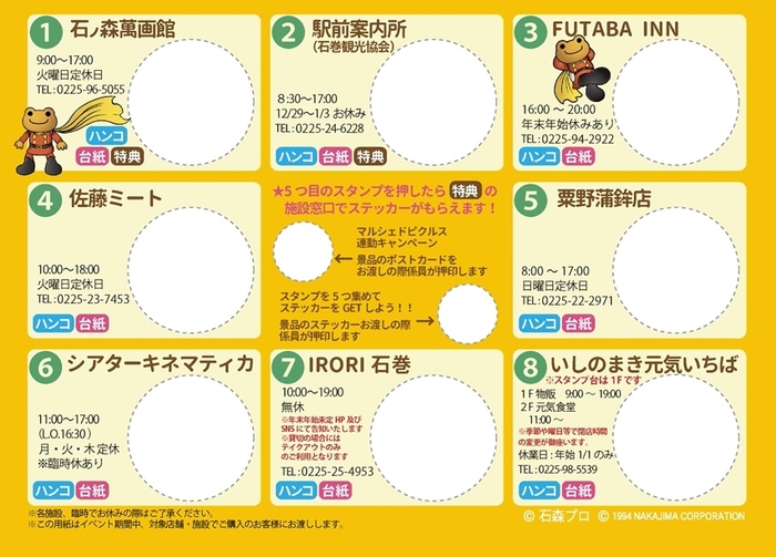 開催期間を通して、石巻市内の8カ所を巡るスタンプラリーを開催。