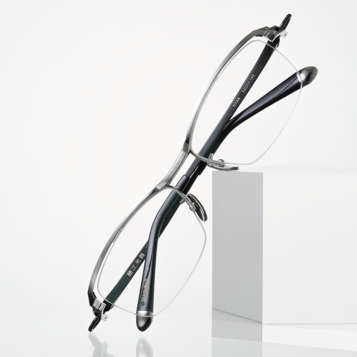 ファンデーションがつきにくく、ズレにくいクリアで高級感のある鼻パッドを採用。U字バネとβチタンを採用し、しなやかなかけ心地を実現します。