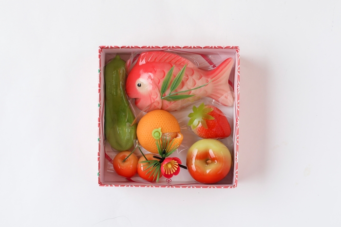 職人技が光る練り切り細工は本物そっくりの果物や野菜を再現しつつも、小ぶりで可愛らしいフォルムが魅力です。彩り鮮やかな赤や緑など、春の訪れを感じさせる見た目に仕上げました。