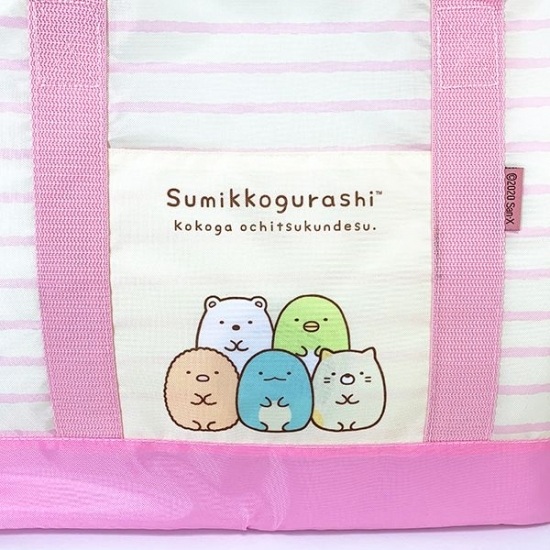 保冷のトート。中がふけて洗える、安定定番の作りです。王道のすみっコ柄、すみっコカラーです。