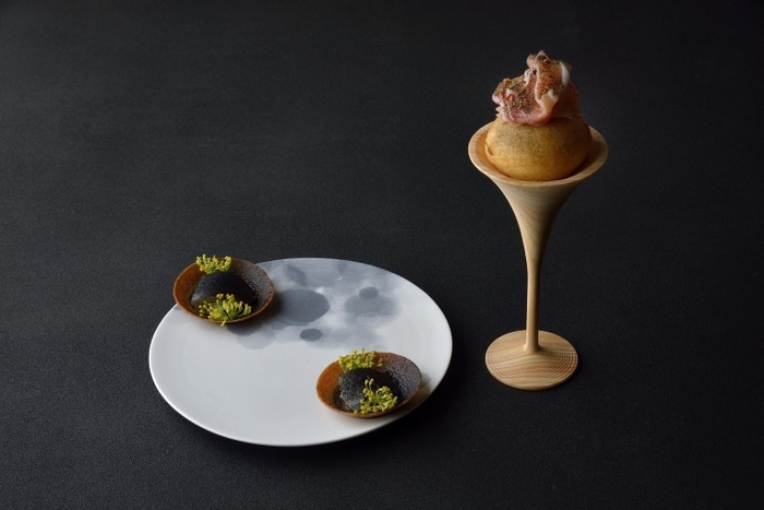 児玉の料理の特徴は、これまでの経験から咀嚼したフランス料理とモダンノルディックがベースとなり、自身の目で見つけた素材に貯蔵や発酵のテクニックを加え、その工程のひとつひとつに丁寧に手を入れていることです。一皿の上の構成要素を数多く使うにも関わらず、それぞれの味わい、食感、香が見事に調和し、ひとつのアートとして見事に仕上げられています。