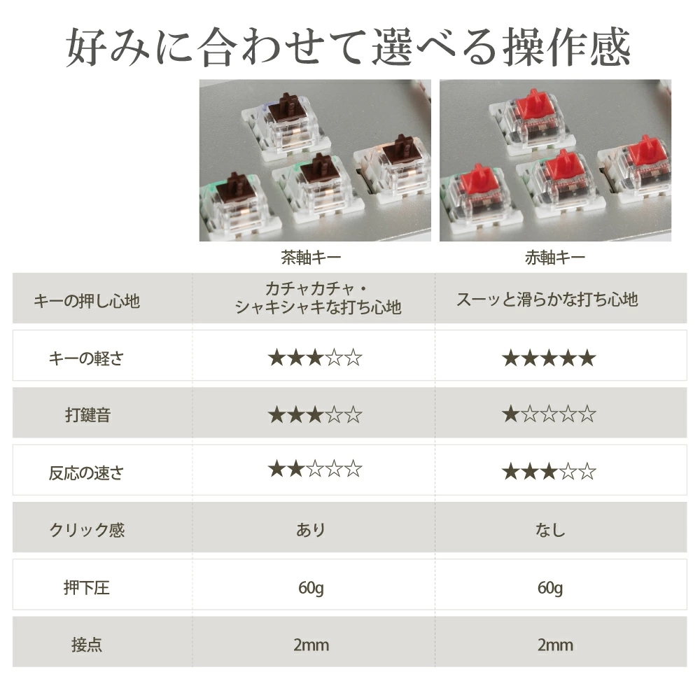 打鍵音が茶軸より静かになり、オフィスや自室で無理なく使用できるようになりました
