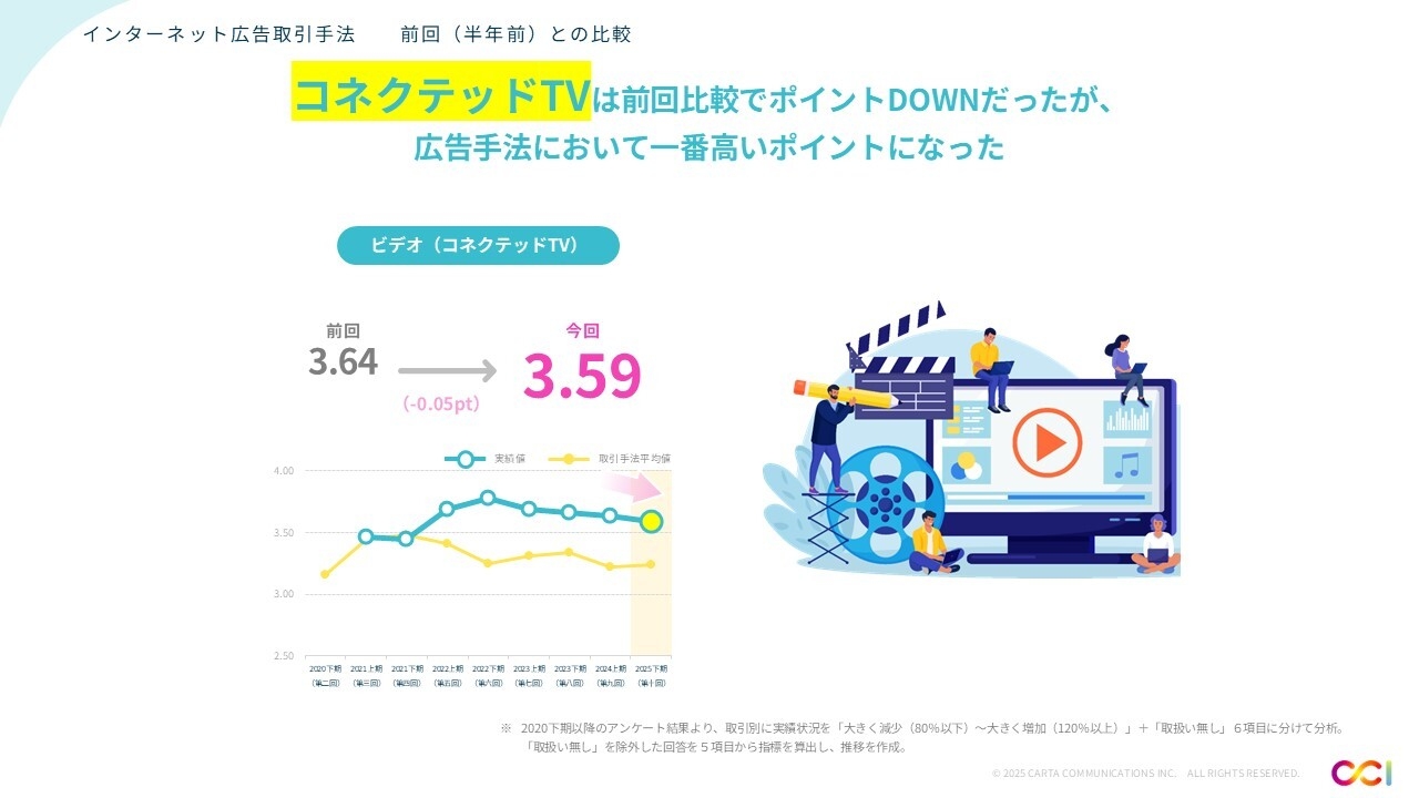 広告取引手法別では、動画広告のポイントが引き続き高い傾向にあり、特にコネクテッドTVのポイントが最も高い結果となった。