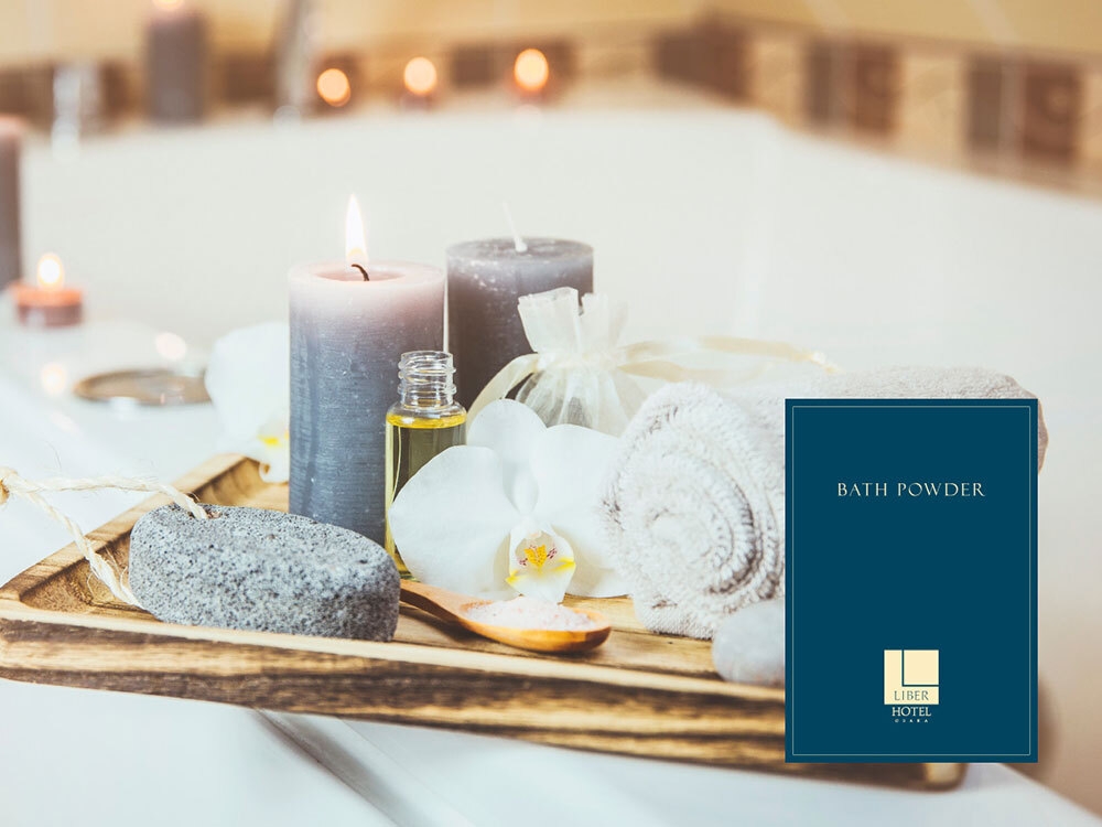 ご自宅でもリーベルの湯をお楽しみいただける入浴剤など、感謝の気持ちを込めたホテルオリジナルグッズをプレゼント。