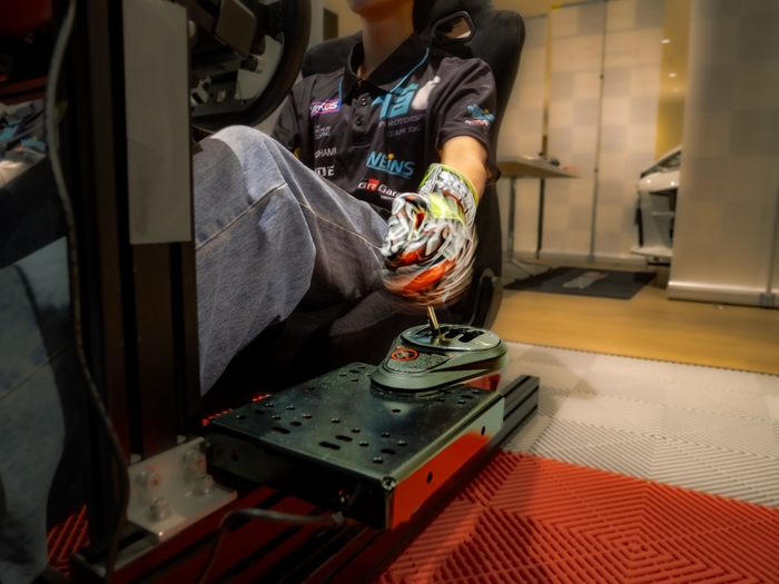 今回の検証ではDRAPOJIシフターマウントにThrustMaster製7速ミッションを装着し「WEINS MOTORSPORTS TEAM TaG」(以下TaG(タッグ))所属5名の選手に協力いただきシフターマウントの使用による高い没入感から生まれるメリットについて検証を行いました。