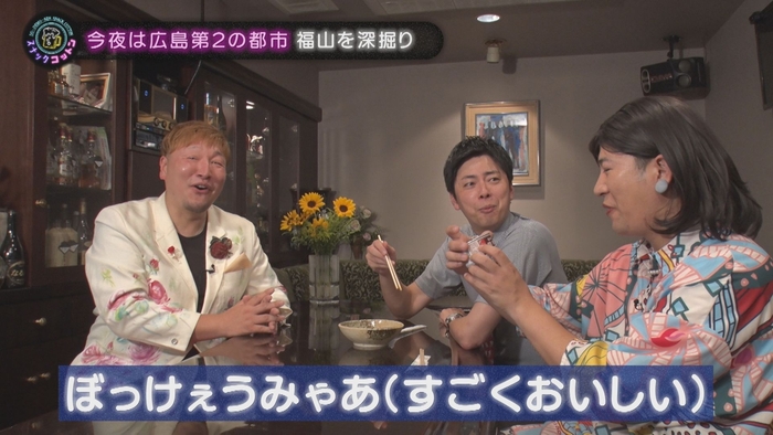 今回の放送では「崖の上のポニョ」の舞台といわれる、鞆の浦!や世界に誇るバラ祭!などで有名な広島・第2の都市、福山を深堀りしちゃいます! 前回放送で紹介した”広島弁の伝道師”に続き、”福山の伝道師”がスナックに来店!これを見れば知られざる福山の魅力がわかる⁉伝道師おススメのグルメも登場します。