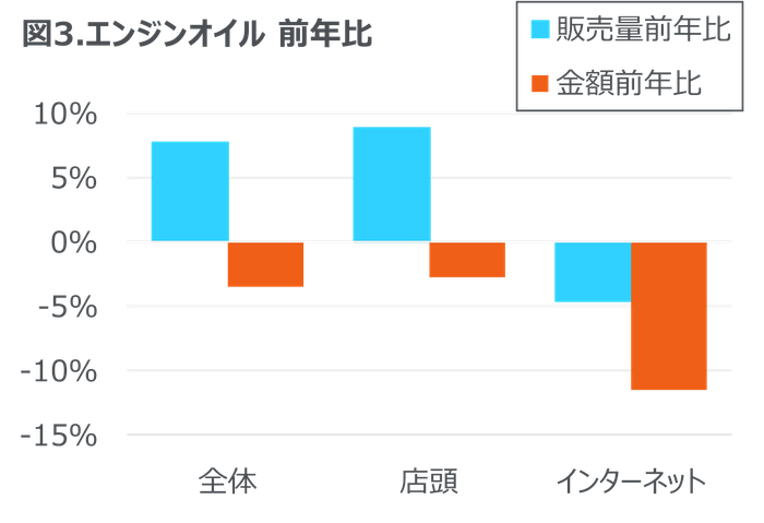 ・ エンジンオイルは販売量前年比8%増と堅調。量り売りでは同18%増に至った。