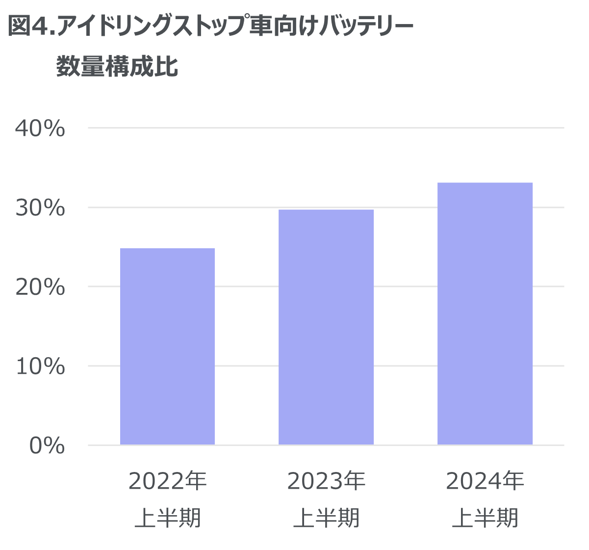 ・ アイドリングストップ車向けバッテリーの拡大が見られ、数量構成比は33%に達した。