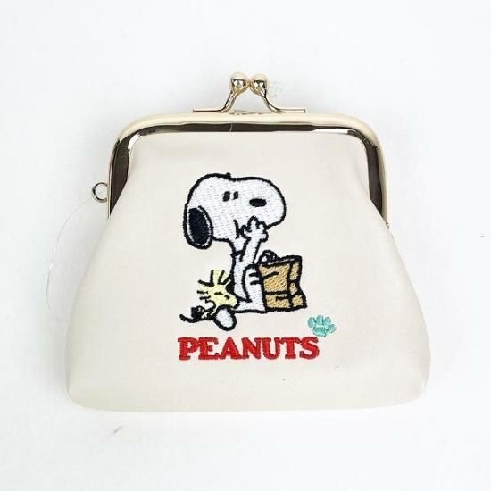 スヌーピーの刺繍が鮮やかでポップなミニがま口。小銭入れとしても小物入れとしても使える利便性が高いミニポーチ型がま口です。
