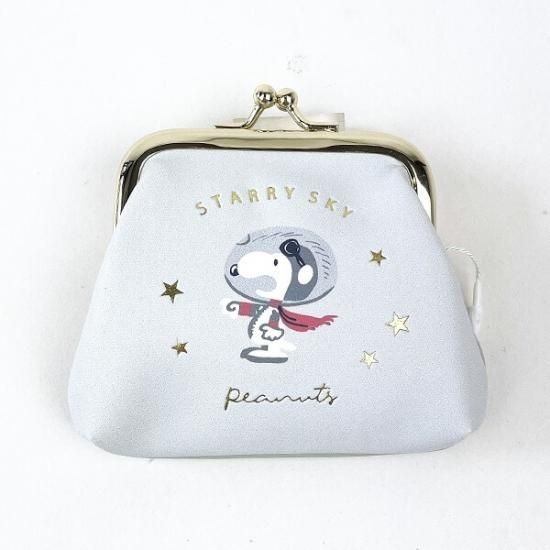 こちらは、スヌーピーのシンプルなイラストと淡い色が大人カワイイがま口です。