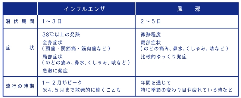 では、具体的に、一般的な風邪とインフルエンザはどう違うのでしょうか?