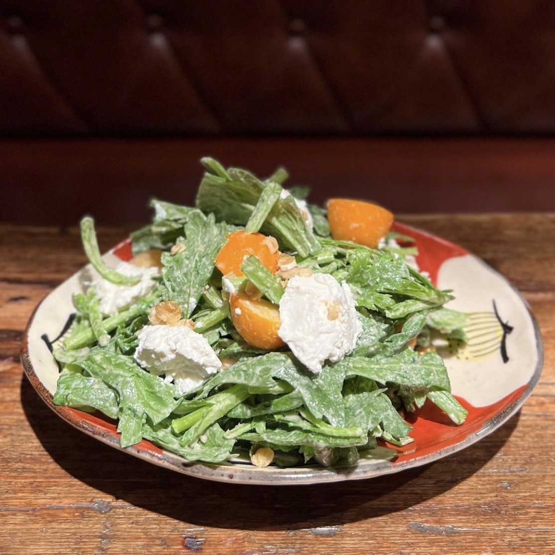 ・前菜でご提供する「春菊ときんかんとリコッタチーズのサラダ」