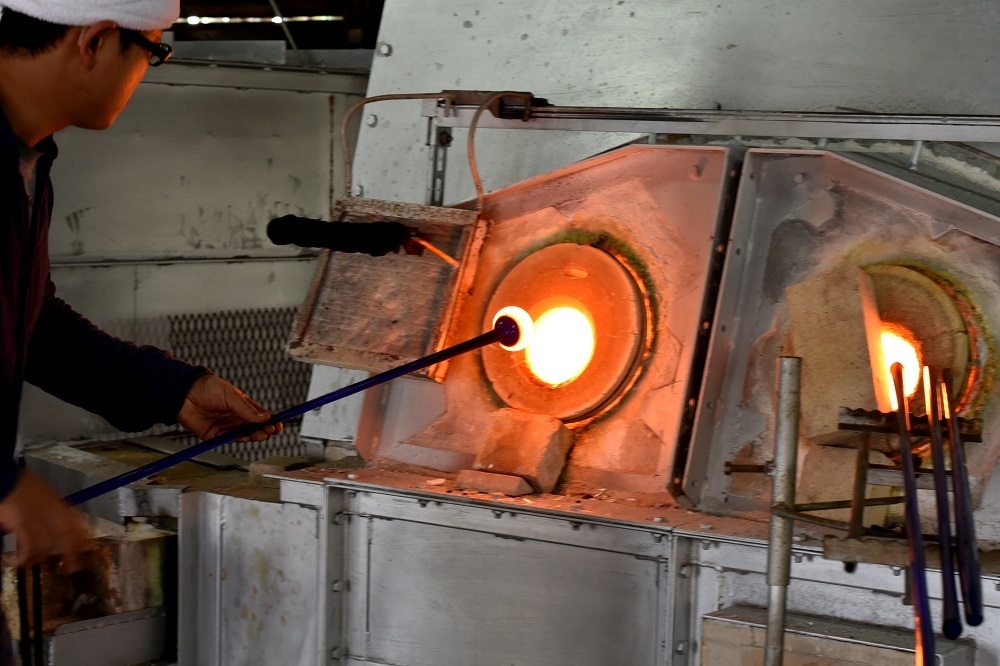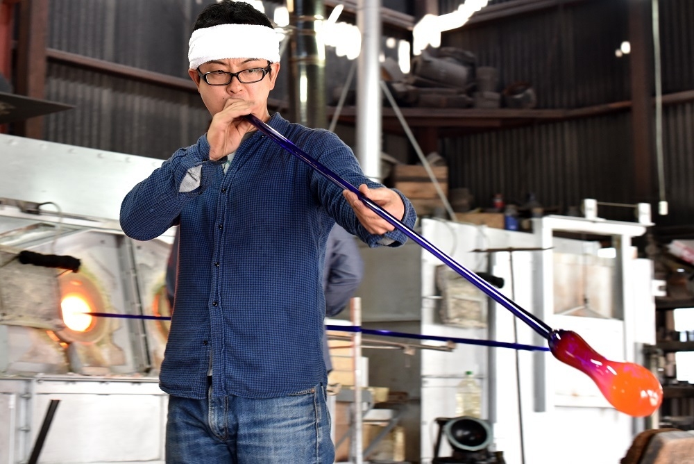 明治36年の創業以来、120年以上の歴史を持つ副島硝子工業にて唯一製造されています。型を使わず、職人が一つ一つ丁寧に宙吹きで仕上げており、温かみある形と優しい口当たりが特徴です。