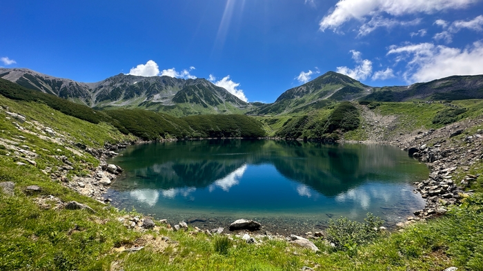 富山県と長野県を結ぶアルペンルートは総距離37.2km、最大高低差は1,975mという広大なエリアに広がるため撮影に適したフォトスポットも多く点在しています。フォトスポットは季節によって様々な景色を楽しめますが、これからの時期おすすめのスポットは、室堂ターミナルからほど近い「みくりが池」。7月中旬頃すべての湖面の雪が解けて条件が揃えば、スマートフォンでも水面に山並みが映る景色を綺麗に撮影することができます。また、秋の紅葉シーズンには大観峰駅展望台から立山ロープウェイと美しい紅葉を撮影するのもおすすめです。
