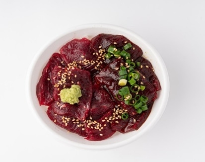 くじらの赤身、ユッケダレの漬けくじら2種の味わいを食べ比べできます。