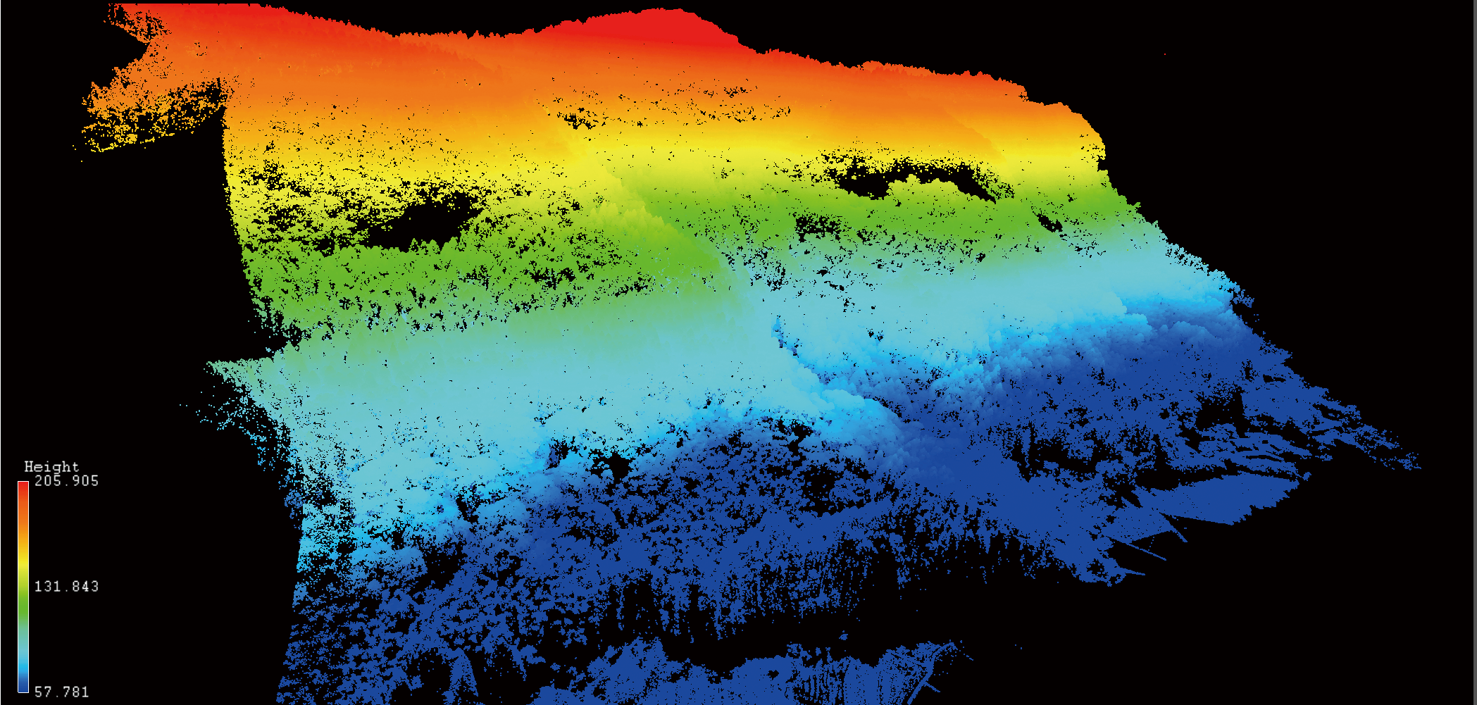「UL-X1」は、森林地帯を例に挙げると、植生表面で反射したレーザのリターン信号に加え、植生の隙間から地表面に到達したレーザのリターン信号も受信できるため、植生のデータを取り除くことで、地表面のデータが得られます。