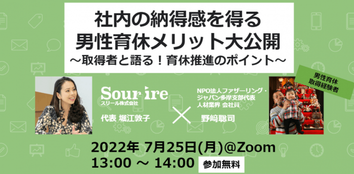 【人事向け無料セミナー】7/25(月)社内の納得感を得る男性育休メリット大公開 !〜取得者と語る!育休推進のポイント〜
