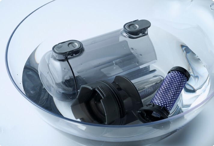 使い捨てフィルターで、手を汚さずゴミ捨てが可能。水洗いできるダストボックスで清潔さをキープ。