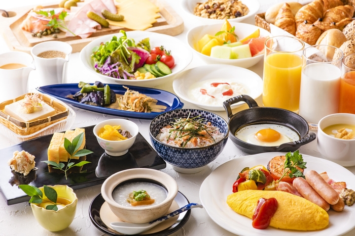 朝から元気にパワーチャージ。和食、洋食、キッズメニューなどを取り揃えたバラエティ豊かな朝食を、ビュッフェスタイルでお楽しみいただけます。