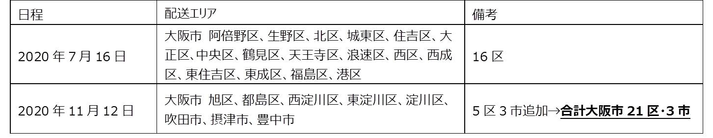 ■大阪府におけるサービス対象エリア(※2020年12月3日時点、一部エリアを除く)