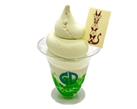メロンゼリーの上にメロンソフト、ホワイトチョコレートをトッピングしたオリジナルソフト。