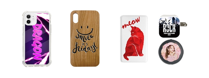 ケイオーでは、天然木の木目が美しいiPhone用ウッドケースや、大容量モバイルバッテリー、人気のスマホリングなど、いろいろなスマーフォンアクセサリーの制作を承っております。サンプルや試作のご依頼にも対応しております。規定のデザインを実際の印刷機で加工したサンプルや、お客様の希望のデザインで校正サンプルを1点制作する試作品にも対応しておりますので、素材やカラー、仕上がりを確認してから安心して量産していただけます。