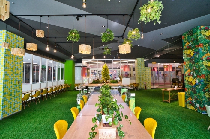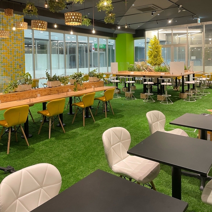 セルフカフェささしまライブ店の特徴は全面人工芝でおしゃれで癒しの空間。