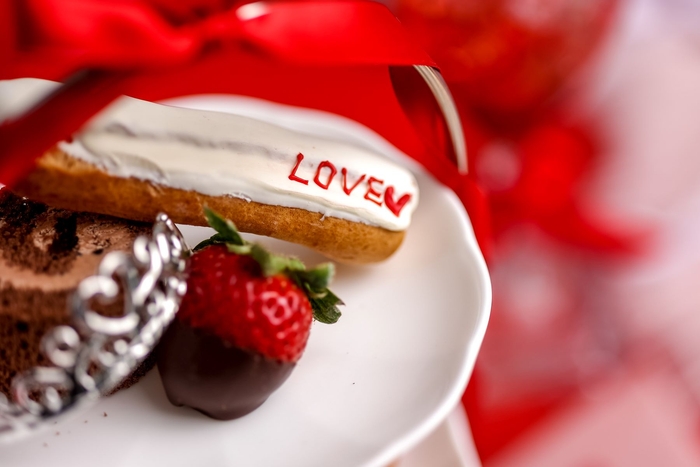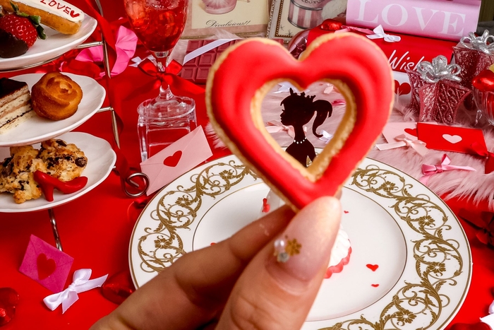 アシェットデセールには推しカラーをあしらったプリンセスイメージのドレスケーキ、ミニ三段スイーツスタンドにはプリンセスティアラ付きのチョコロールや、推しカラーが施されたエクレア/ハートアイシングクッキー/ヒールチョコなどのプチガトーと、シェフ特製のセイボリーをご用意。ホワイトデーも重なる期間なので、ホワイトデーの“推し活”もお楽しみいただけます。