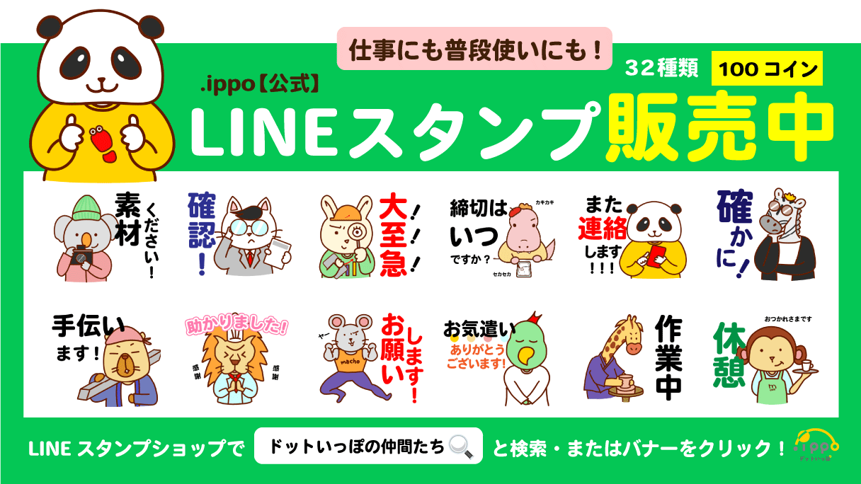 ドットいっぽのホームページ内で使われている動物のイラストを使ったLINEスタンプも発売されています。