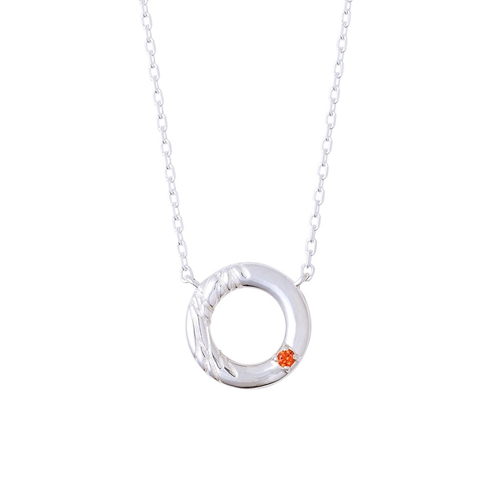 ループタイをモチーフに取り込んだオーバル型のデザイン。中心で揺れる鱗紋のチャームにはイメージカラーストーンをセットしました。