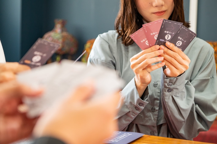 ゲーム中は、他の人の秘密や状況が書かれたカードが手に入ります。