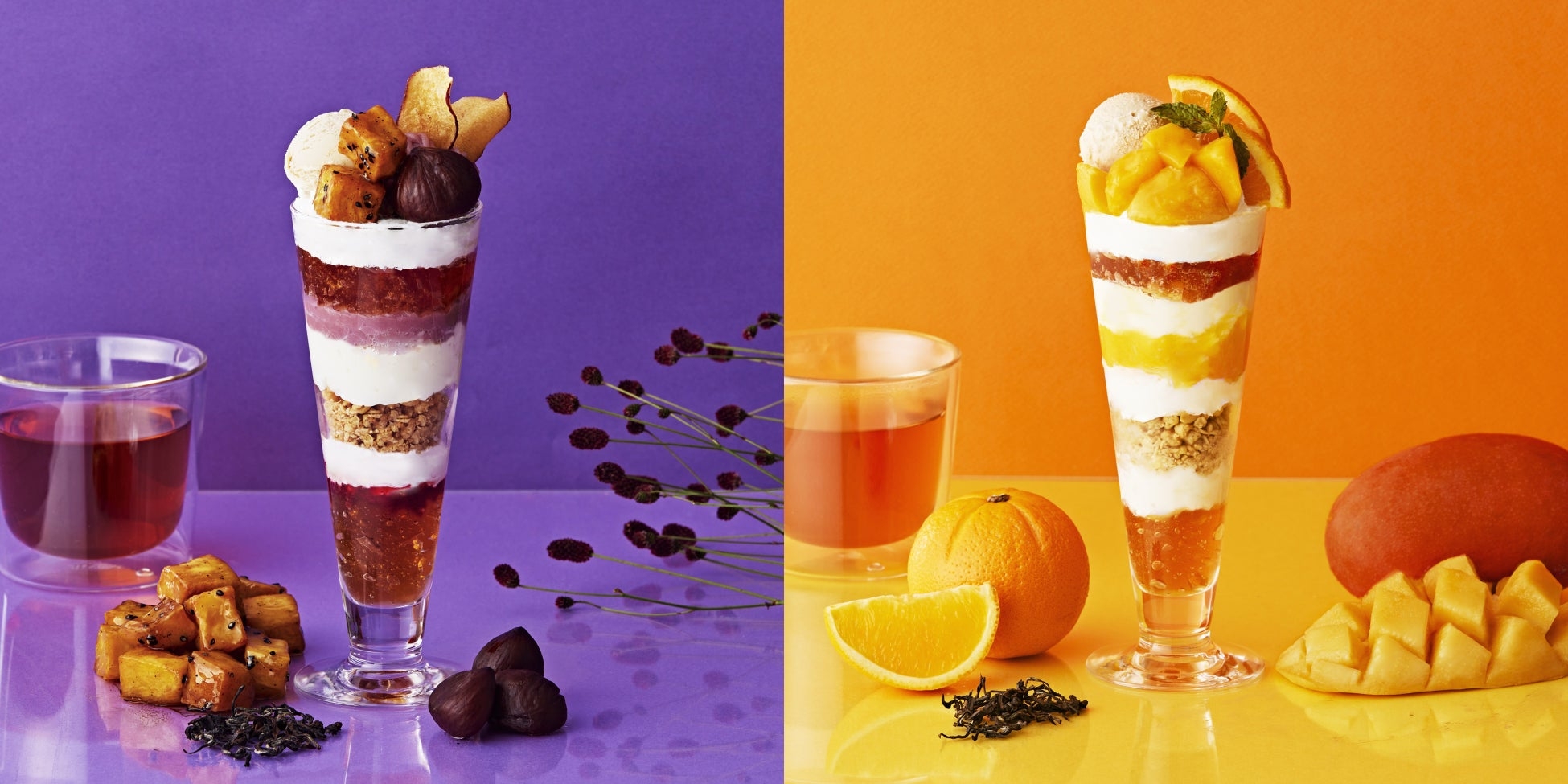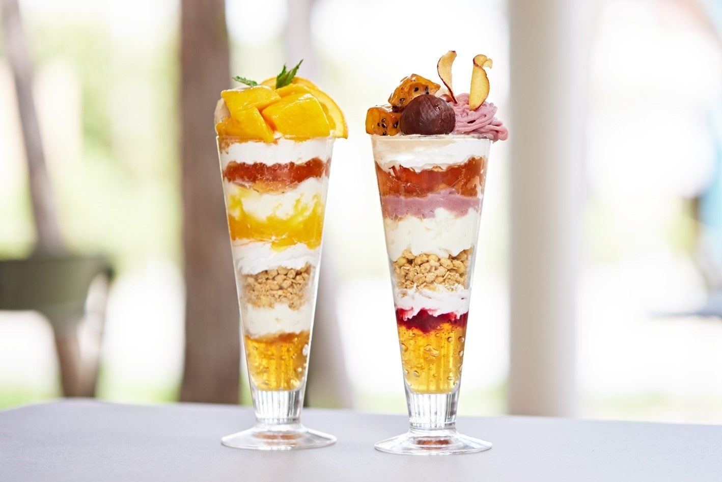 実りの秋を満喫する「紅いもモンブランパフェ」「マンゴーオレンジパフェ」