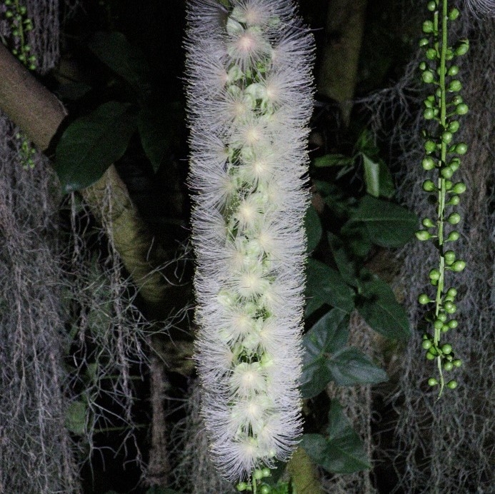 大温室内では熱帯の珍しい花木や、夜間に開花する植物、香りが強くなる植物など、日中には見られない植物の姿をご覧いただけます。熱帯地方には、夜に活動する虫や動物が多く、それらに花粉を運んでもらう夜咲きの花も数多く見られます。夜に咲く花は、暗闇でも目立つ白い花弁や強い香りで虫や動物を誘います。