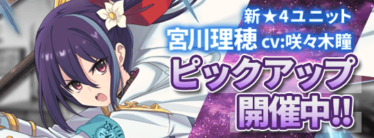 「期間限定 新規実装ピックアップ 宮川理穂《C.I.G-X-BLADE》」では新登場の☆4宮川理穂《C.I.G-X-BLADE》の提供割合が同じクラスの他のユニットよりもアップします。