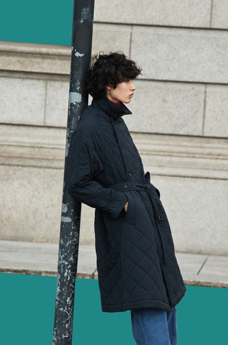展開アイテムは、着丈を少し長めに、ゴージラインを低く設定した4ボタンのダブルブレストジャケットや、サードタイプのGジャンをベースにしたセットアップなど、クラシックな要素を取り入れながら現代風にアレンジしたデザインが特徴です。その他、レトロなチェック柄コート、モードな雰囲気漂うブラックのキルティングコートなど幅広く展開します。また、バンドカラーやワークシャツに加えて、イエローやロイヤルブルーなどの鮮やかなカラーを打ち出したタートルネックニットなど、コーディネートを意識した提案を強化していきます。